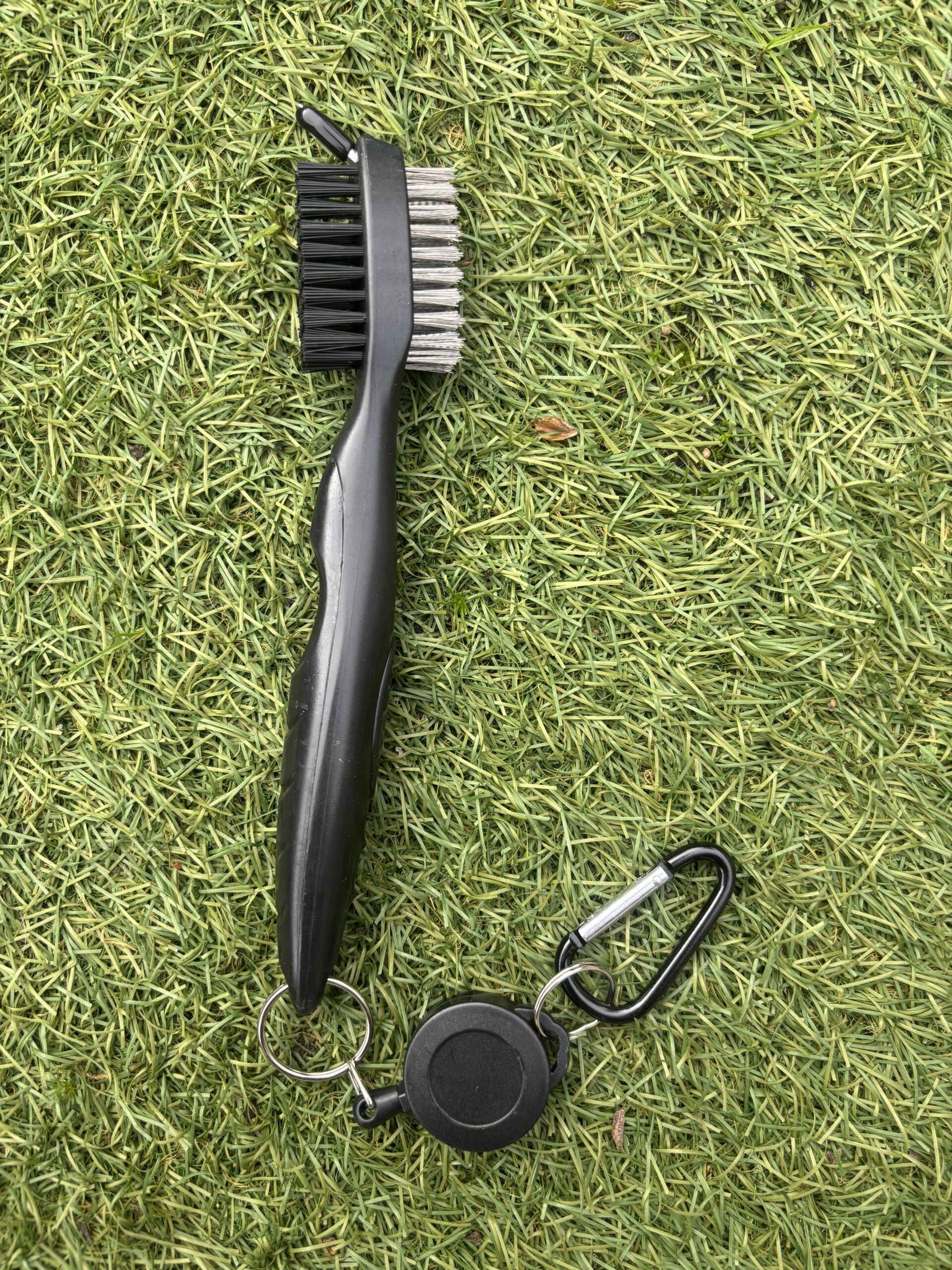 De dubbelzijdige reinigingsborstel is het hart van deze set. Aan de ene kant verwijdert de zachte borstelzijde moeiteloos oppervlakkige viezigheid, zoals zand en grasresten, terwijl de harde borstelgroeven het hardnekkige vuil uit de groeven van je clubs halen. Zo blijft de grip van je clubs optimaal en behoud je maximale controle over de bal bij elke slag. Dankzij de ergonomische en telescopische handgreep ligt de borstel prettig in de hand en bereik je moeiteloos alle hoeken van je clubkoppen.